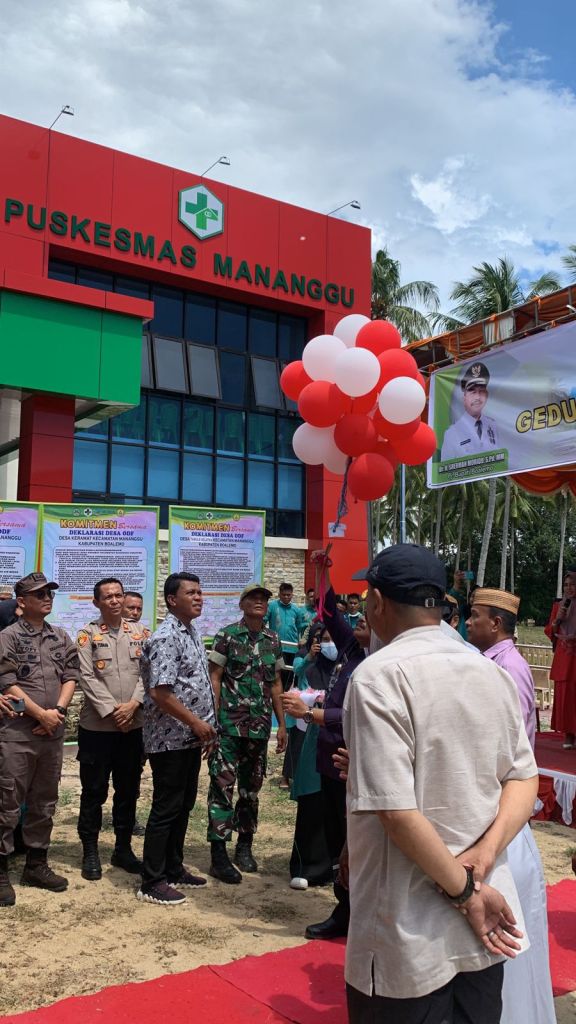 Pada momentum pengresmian Gedung Puskesmas Mananggu, dirangkaikan dengan deklarasi ODF 5 Desa di Kecamatan Mananggu, Kamis 16 November 2023