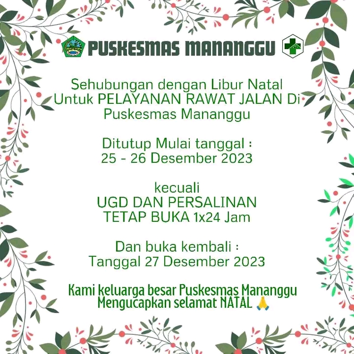Informasi pelayanan ditutup selama cuti bersama natal