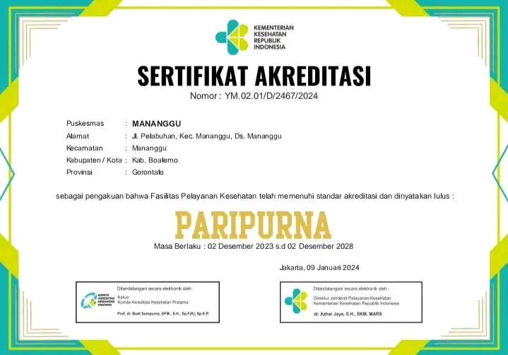 kami Puskesmas Mananggu bisa meraih status akreditasi Paripurna.