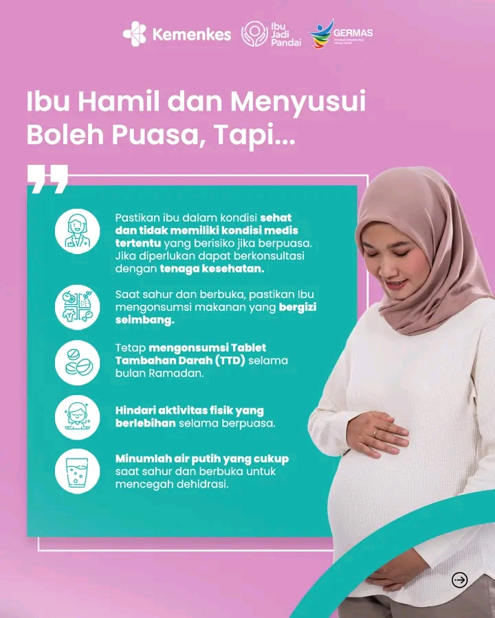 Ingat, kesehatan Ibu dan janin/bayi adalah prioritas utama. Jika merasa lemas, pusing, atau tidak nyaman saat berpuasa, segeralah berbuka dan konsultasikan dengan tenaga kesehatan ya!